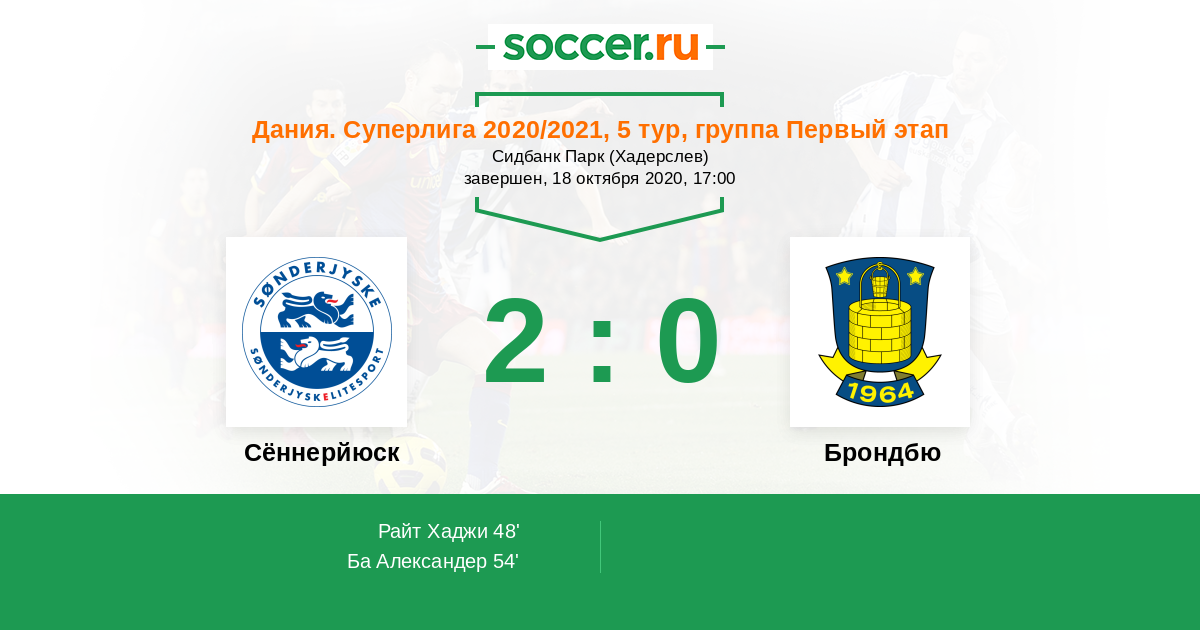 54' (2:0) Ба Александер (9) (Якобсен Андерс (10))