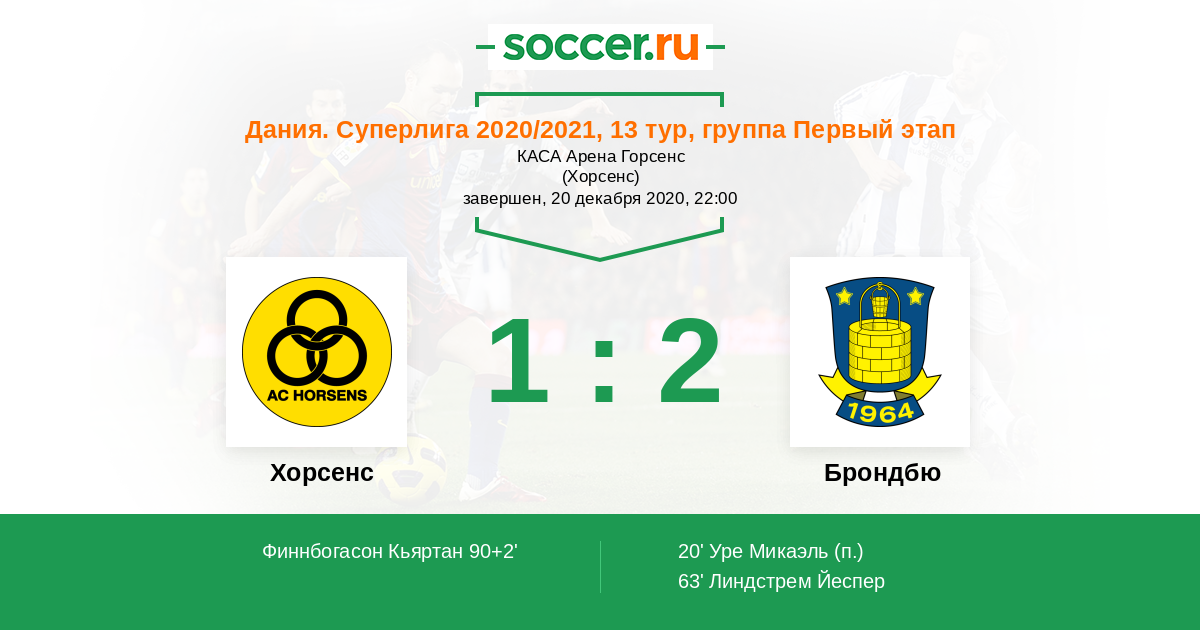 Протокол матча Хорсенс против Брондбю