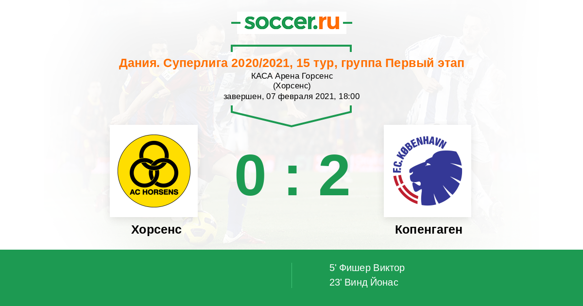 Протокол матча Хорсенс против Копенгаген