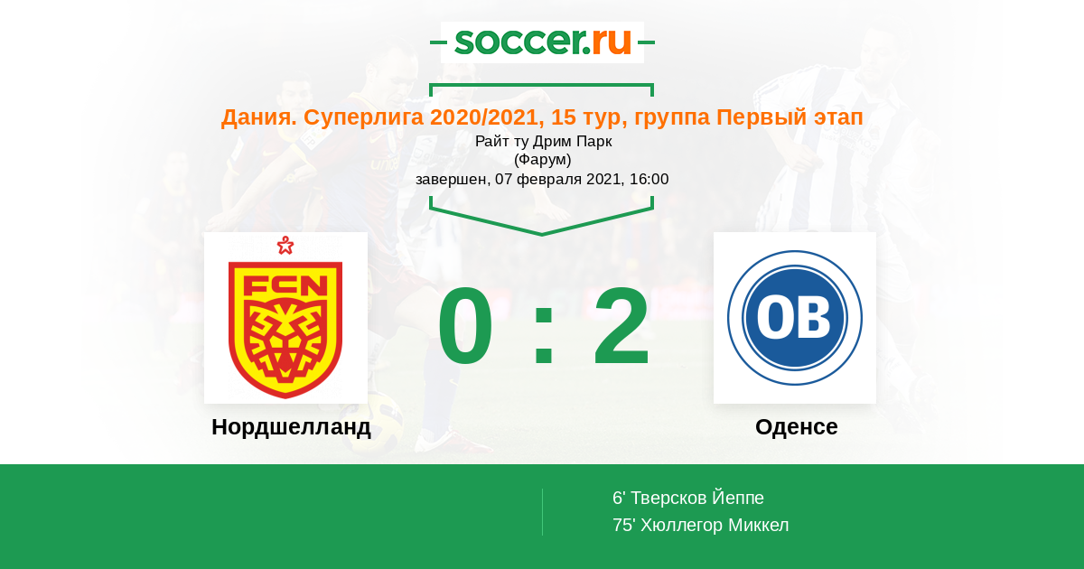 75' (0:2) Хюллегор Миккел (26) (Фрокьяер-Йенсен Мадс (29))