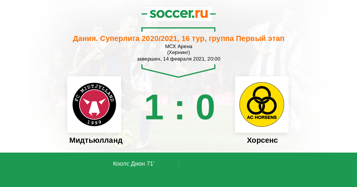 Протокол матча Мидтьюлланд против Хорсенс