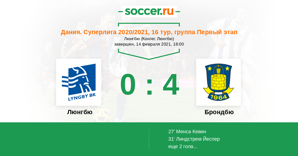 Протокол матча Люнгбю против Брондбю