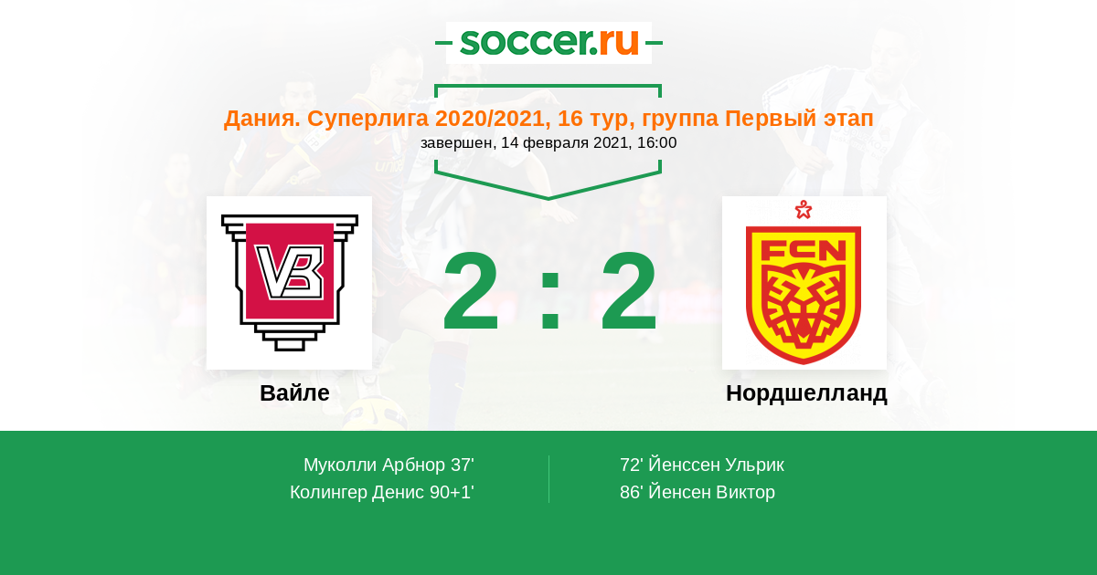 Протокол матча Вайле против Нордшелланд
