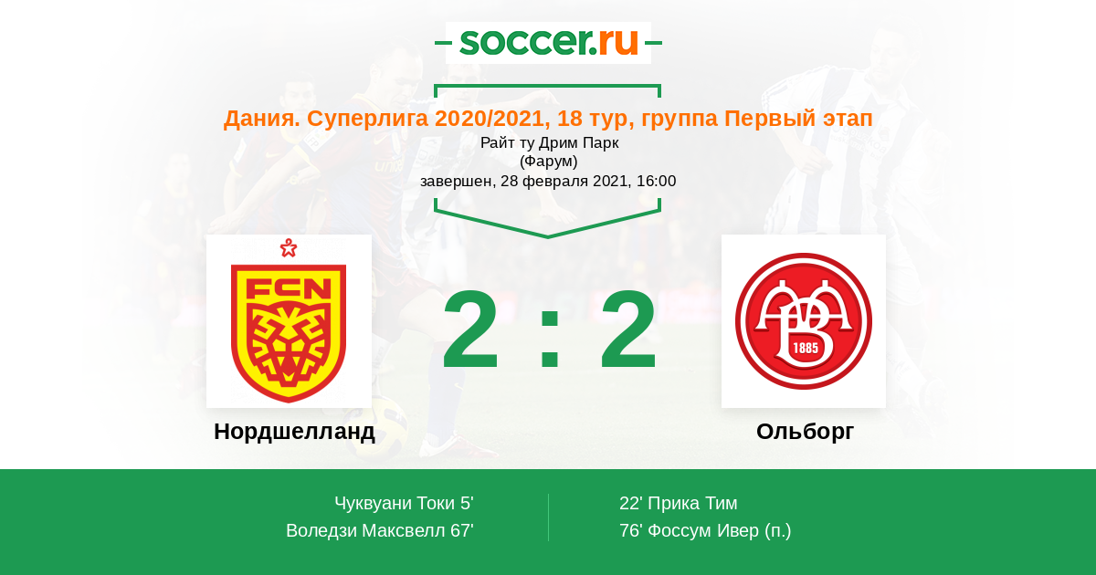 Протокол матча Нордшелланд против Ольборг