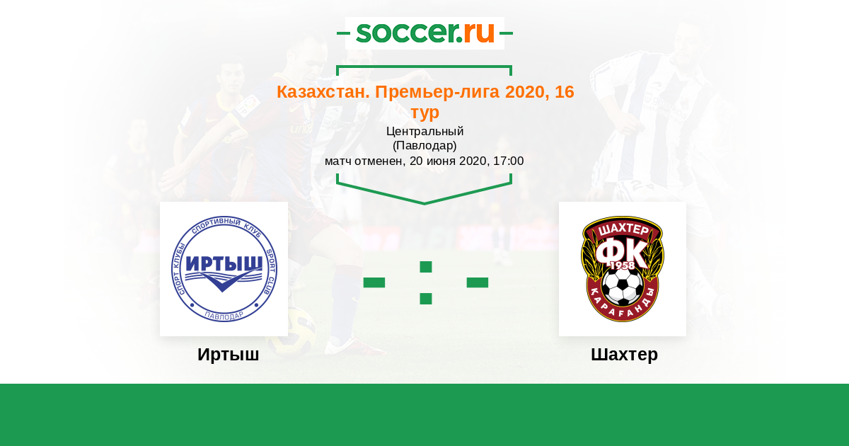 Казахстан. Премьер-лига 23.06.2019 Иртыш Логотип футбольный клуб Иртыш (Павлодар) 0:0 Логотип футбольный клуб Шахтер (Караганда) Шахтер