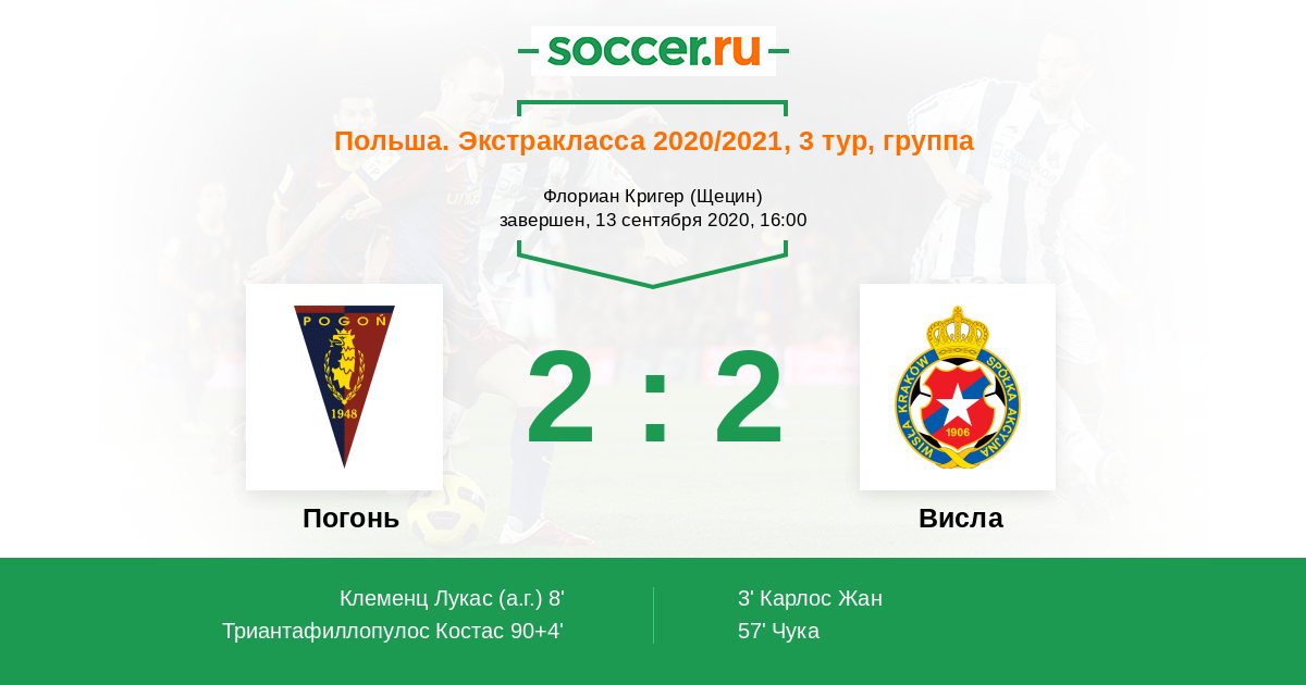 Протокол матча Погонь против Висла