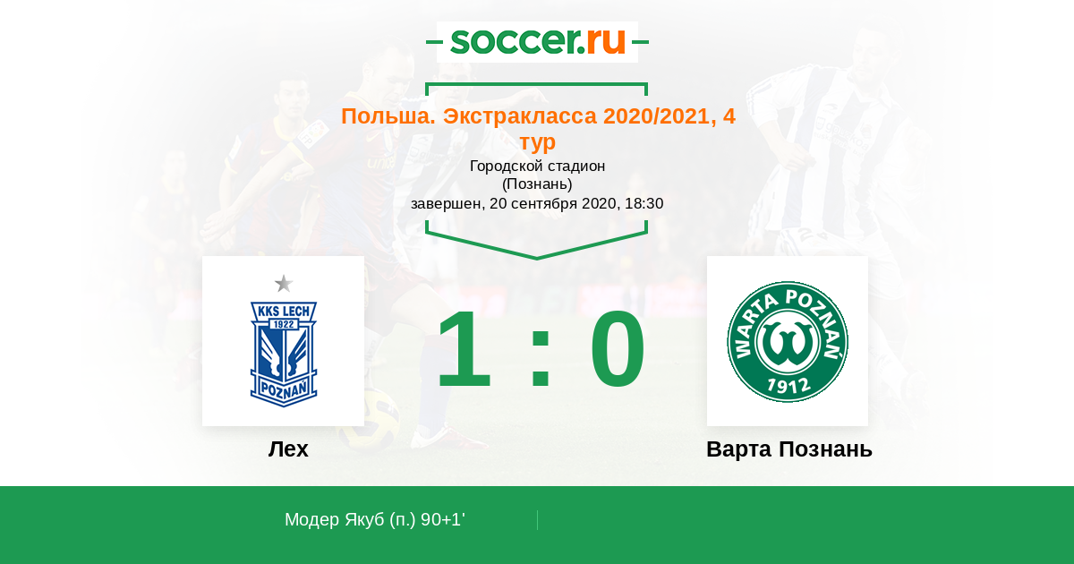 Протокол матча Лех против Варта Познань