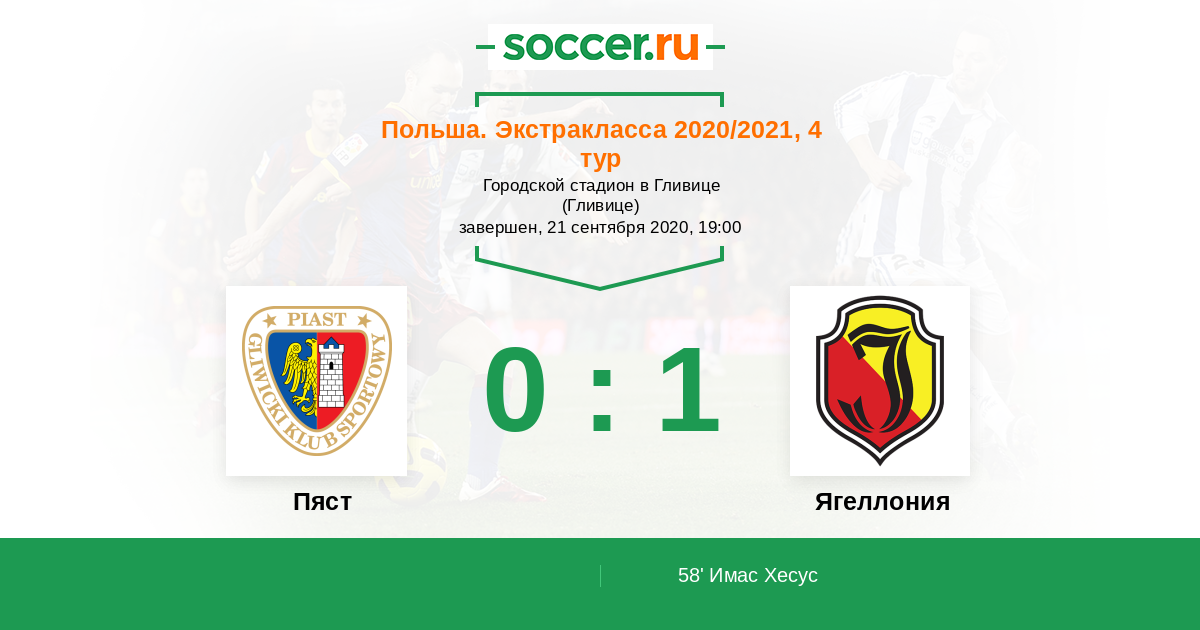 Протокол матча Пяст против Ягеллония