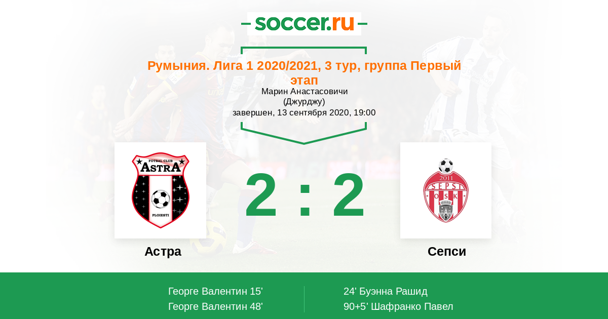 Протокол матча Астра против Сепси