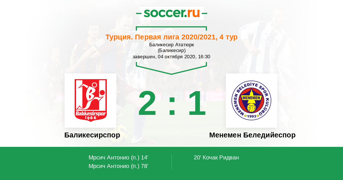 Протокол матча Баликесирспор против Менемен Беледийеспор