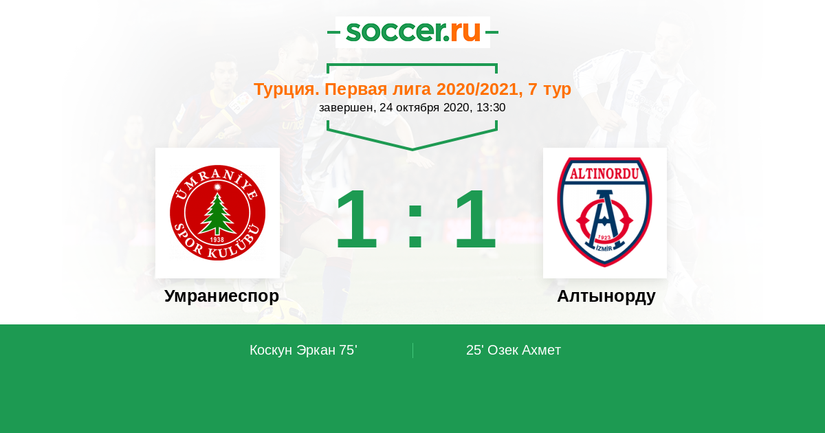 Протокол матча Умраниеспор против Алтынорду