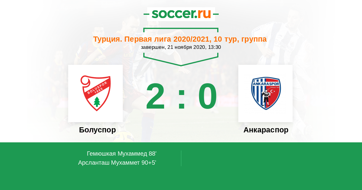 Протокол матча Болуспор против Анкараспор