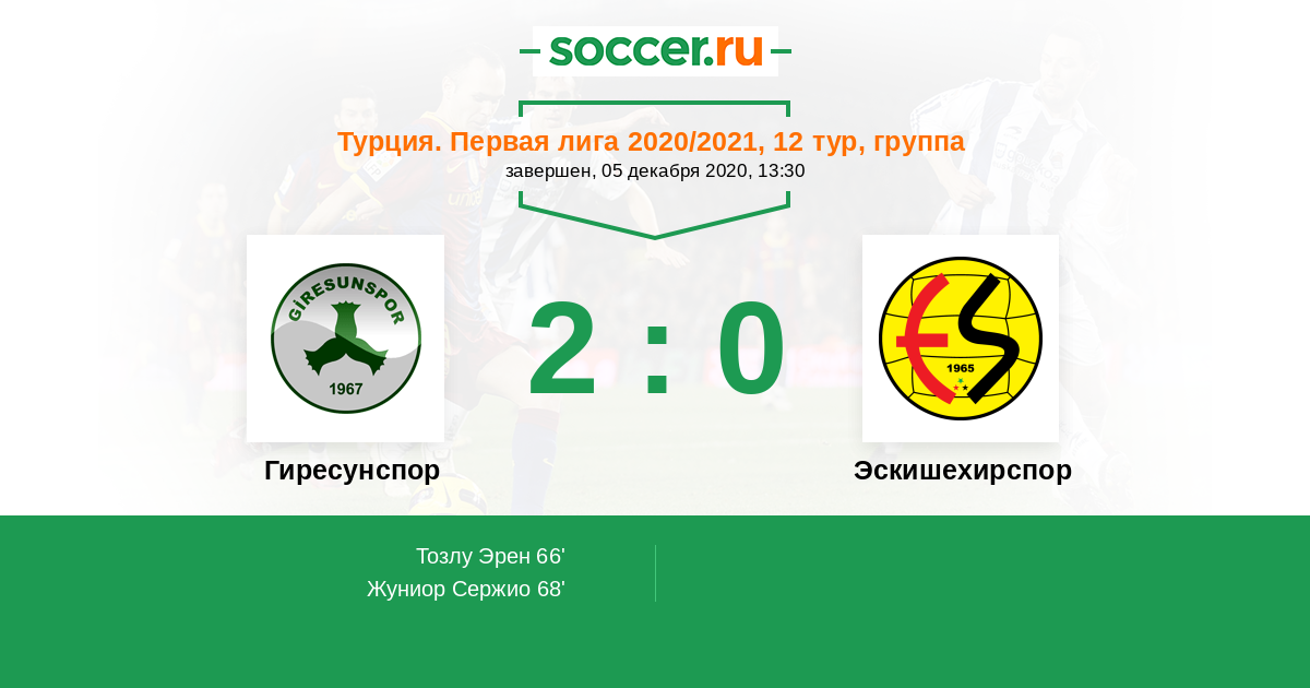 Протокол матча Гиресунспор против Эскишехирспор