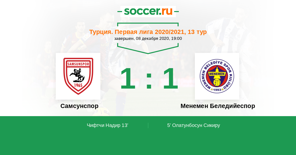 Протокол матча Самсунспор против Менемен Беледийеспор