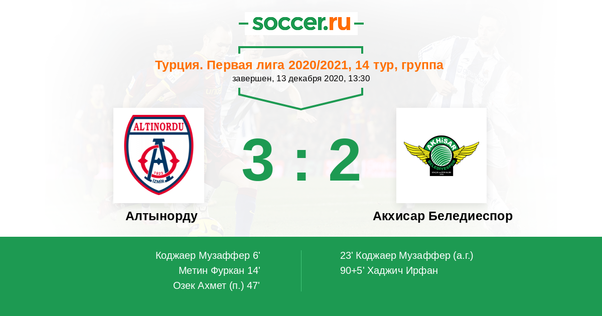 Протокол матча Алтынорду против Акхисар Беледиеспор