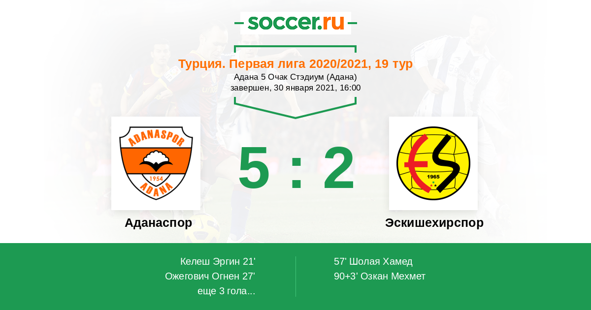 Протокол матча Аданаспор против Эскишехирспор