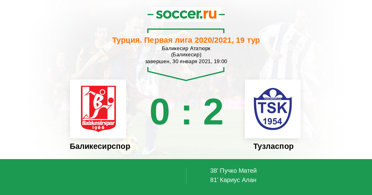 Протокол матча Баликесирспор против Тузласпор