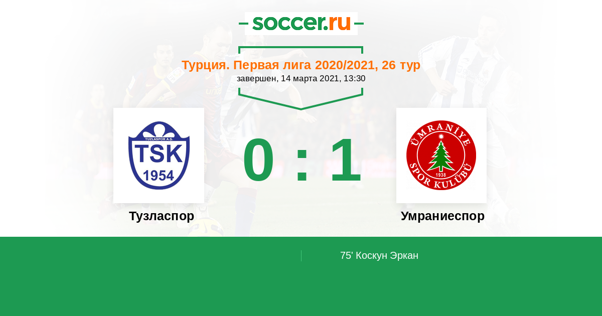 Протокол матча Тузласпор против Умраниеспор