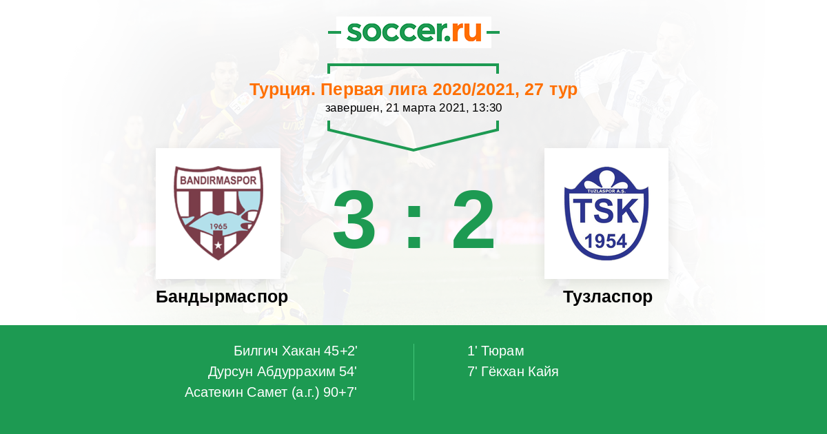 Протокол матча Бандырмаспор против Тузласпор