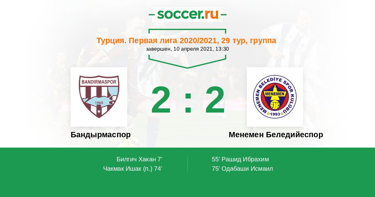 75' (2:2) Одабаши Исмаил (39) (Рашид Ибрахим (61))