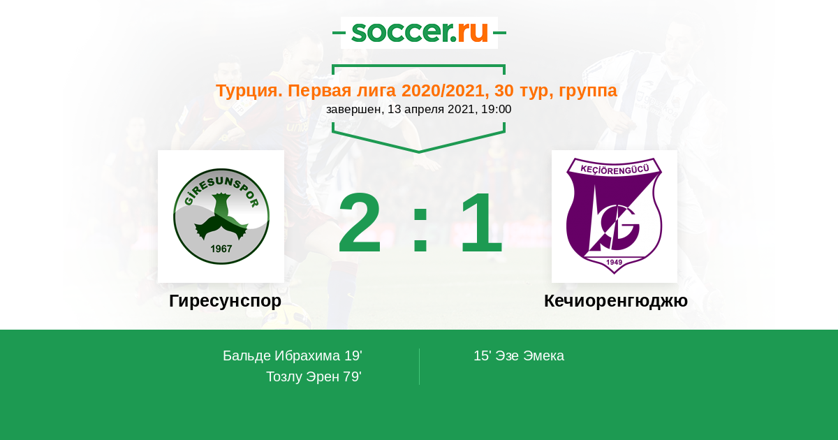 Протокол матча Гиресунспор против Кечиоренгюджю
