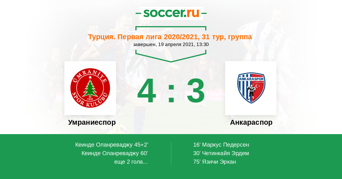 72' (3:2) Кеинде Оланреваджу (90) (Коскун Эркан (55))