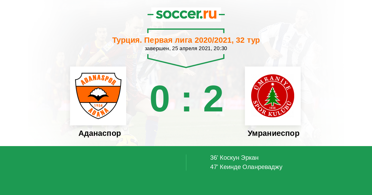 Протокол матча Аданаспор против Умраниеспор