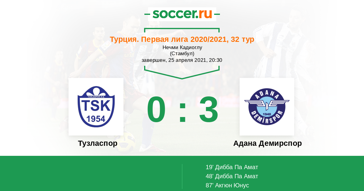 Протокол матча Тузласпор против Адана Демирспор