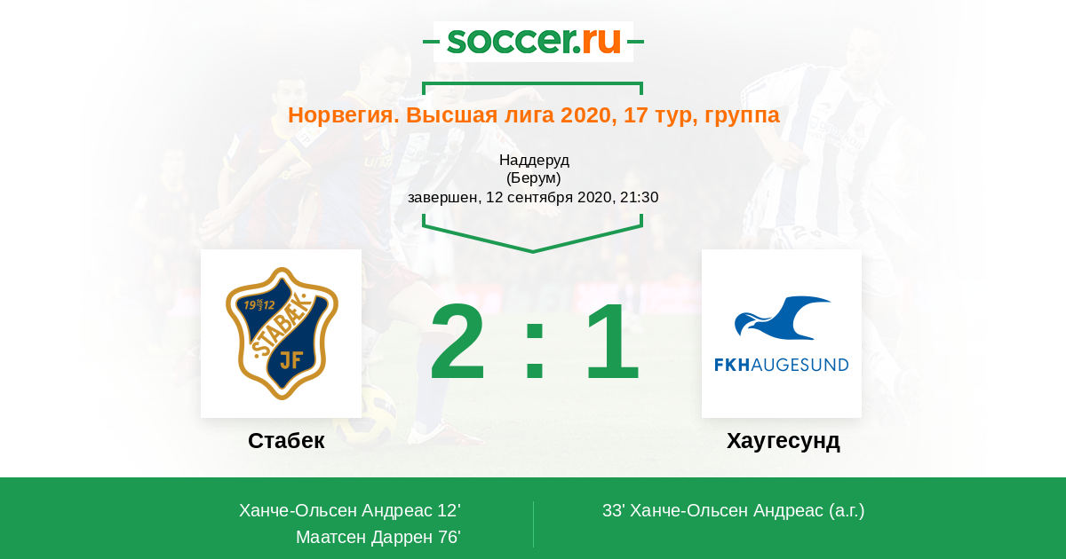 Протокол матча Стабек против Хаугесунд