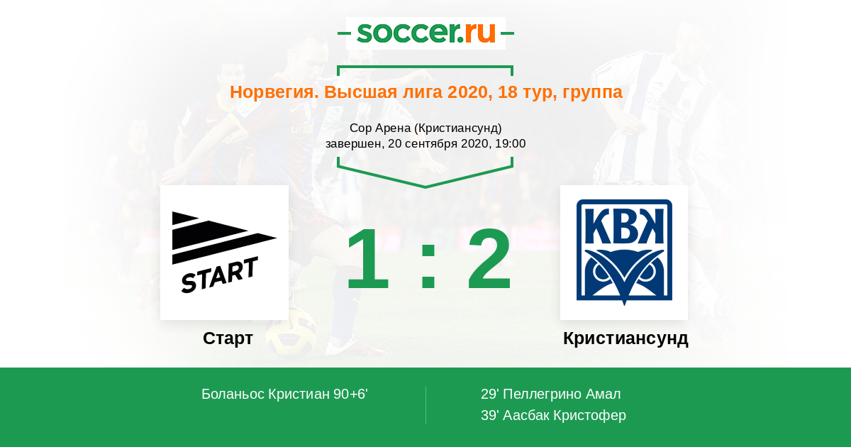 Протокол матча Старт против Кристиансунд