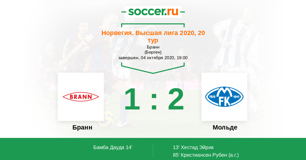 Протокол матча Бранн против Мольде