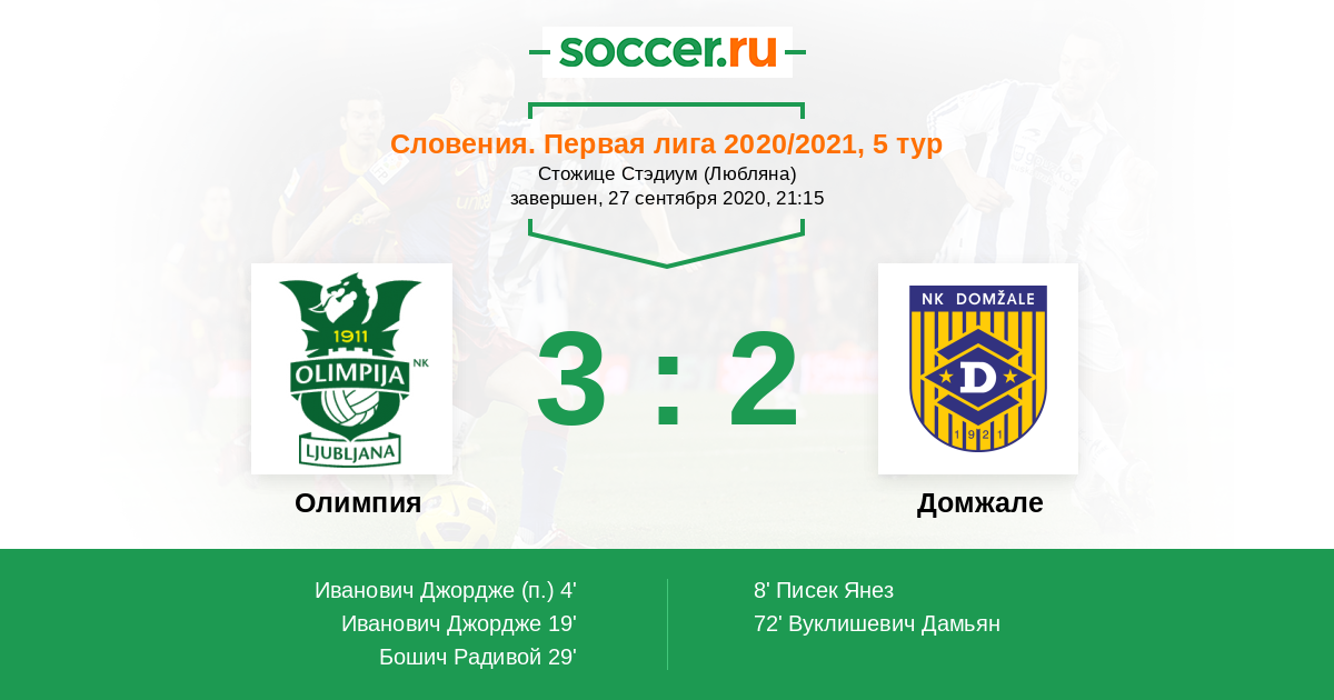 Протокол матча Олимпия против Домжале