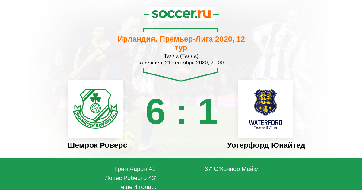 Протокол матча Шемрок Роверс против Уотерфорд Юнайтед
