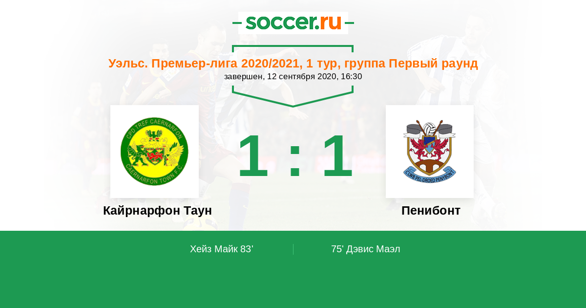 Протокол матча Кайрнарфон Таун против Пенибонт