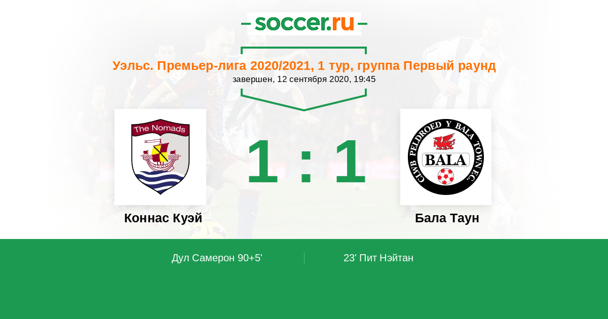 Протокол матча Коннас Куэй против Бала Таун