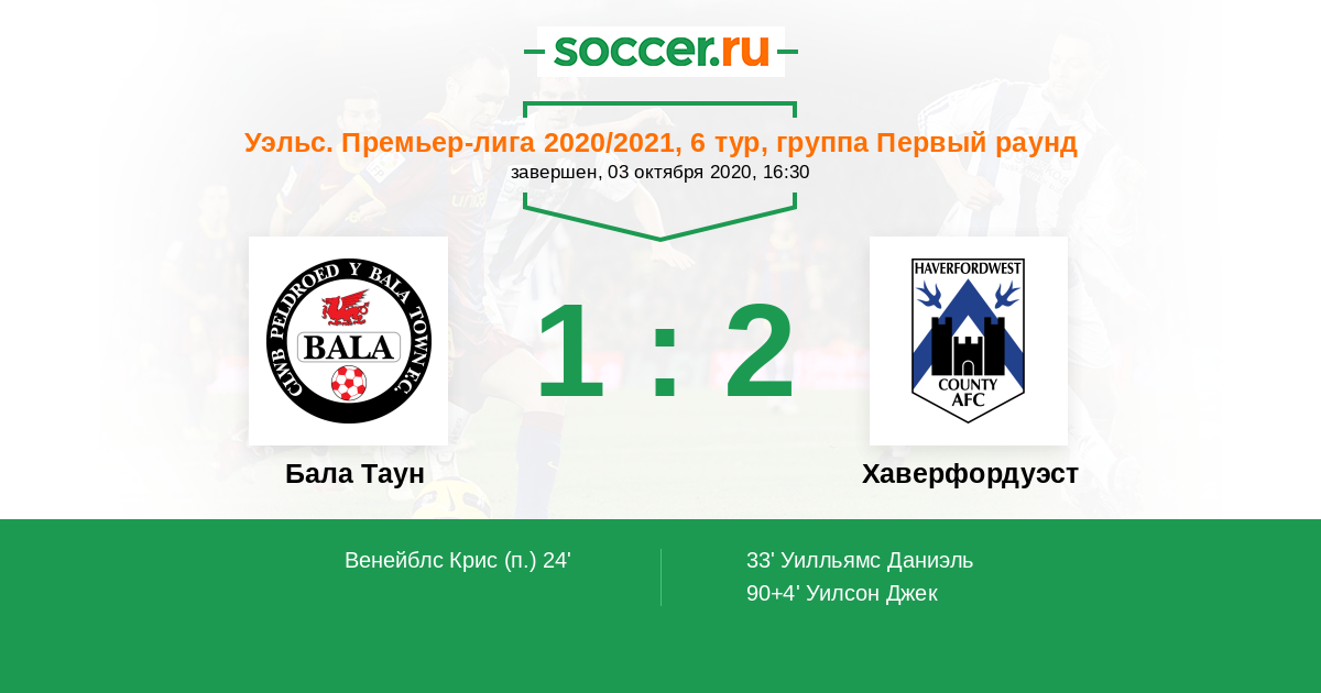 Протокол матча Бала Таун против Хаверфордуэст