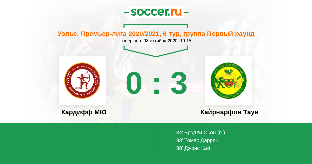 Протокол матча Кардифф МЮ против Кайрнарфон Таун