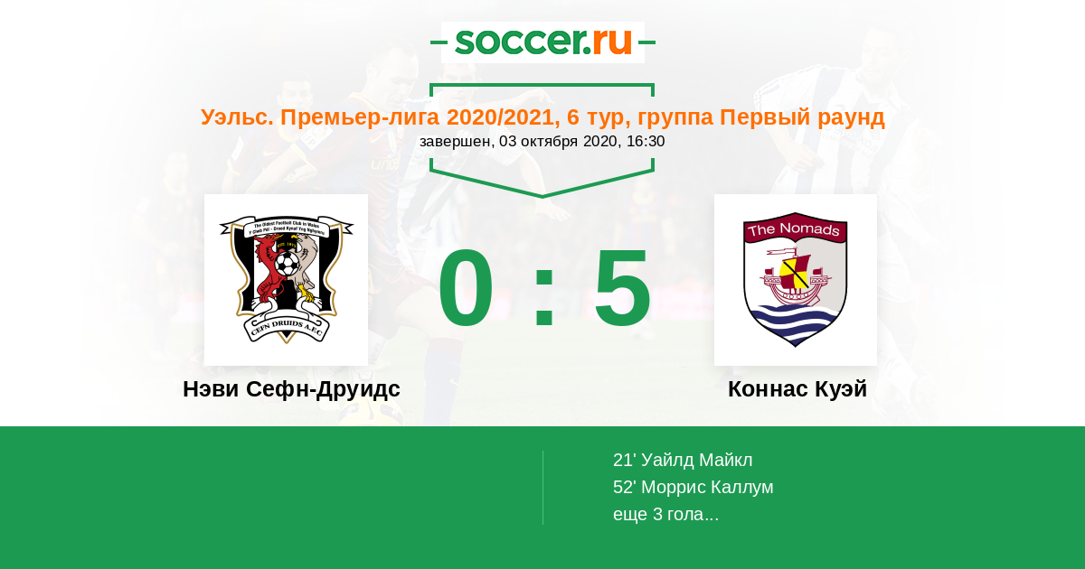 Протокол матча Нэви Сефн-Друидс против Коннас Куэй