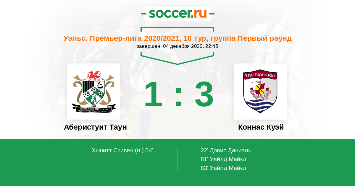 Протокол матча Аберистуит Таун против Коннас Куэй