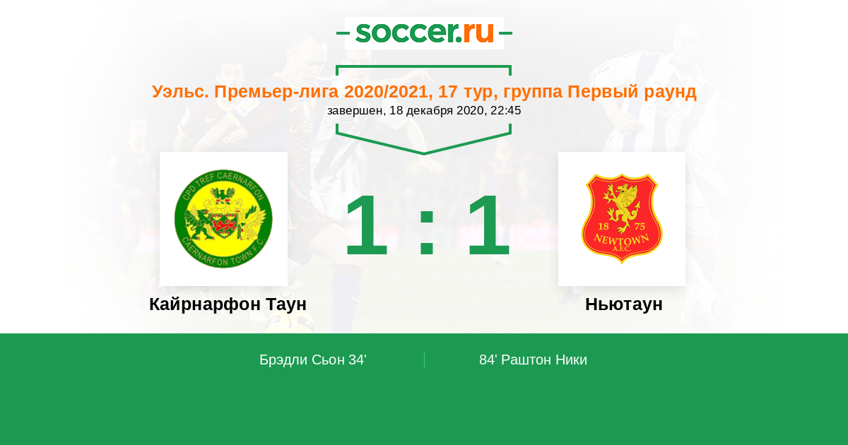 Протокол матча Кайрнарфон Таун против Ньютаун