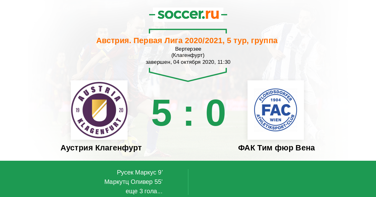 Протокол матча Аустрия Клагенфурт против ФАК Тим фюр Вена