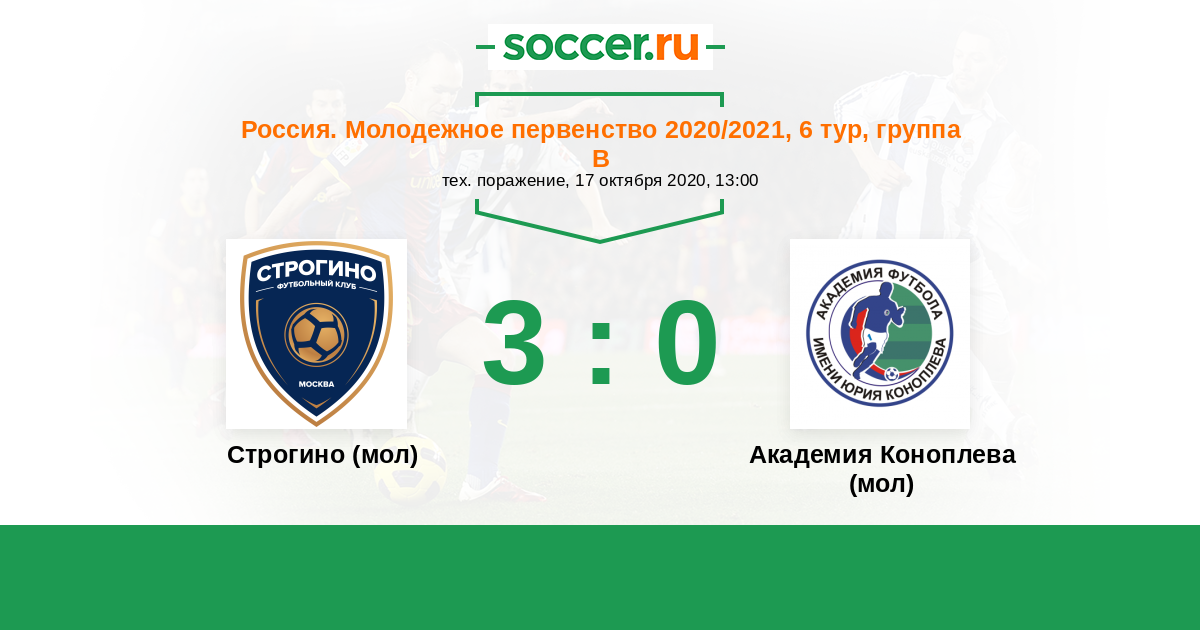 История матча Строгино (мол) против Академия Коноплева (мол)