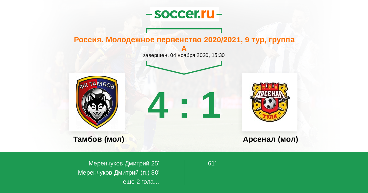 Протокол матча Тамбов (мол) против Арсенал (мол)