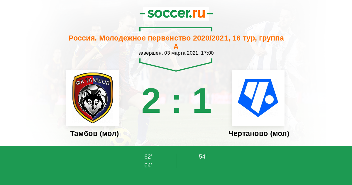 Протокол матча Тамбов (мол) против Чертаново (мол)