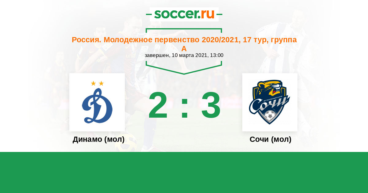 История матча Динамо (мол) против Сочи (мол)