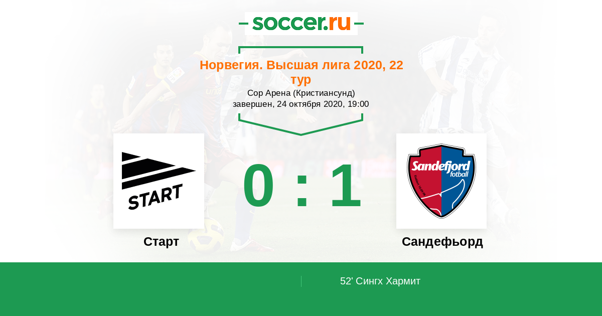 Протокол матча Старт против Сандефьорд