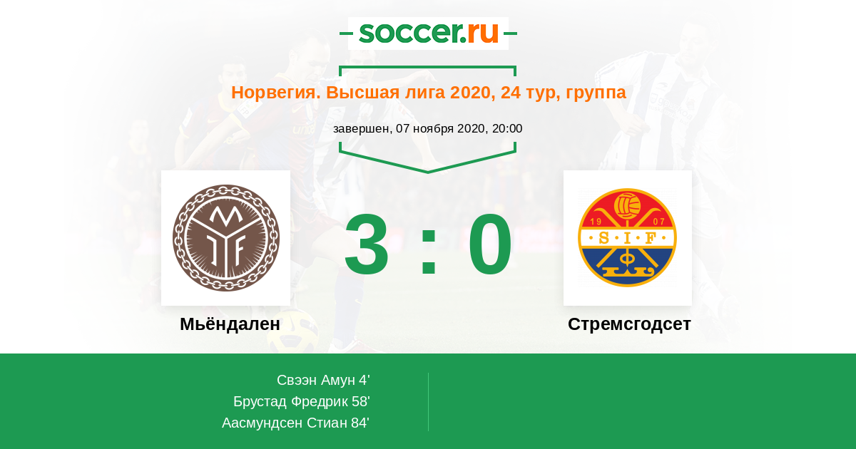 58' (2:0) Брустад Фредрик (8) (Гаусет Кристиан (11))