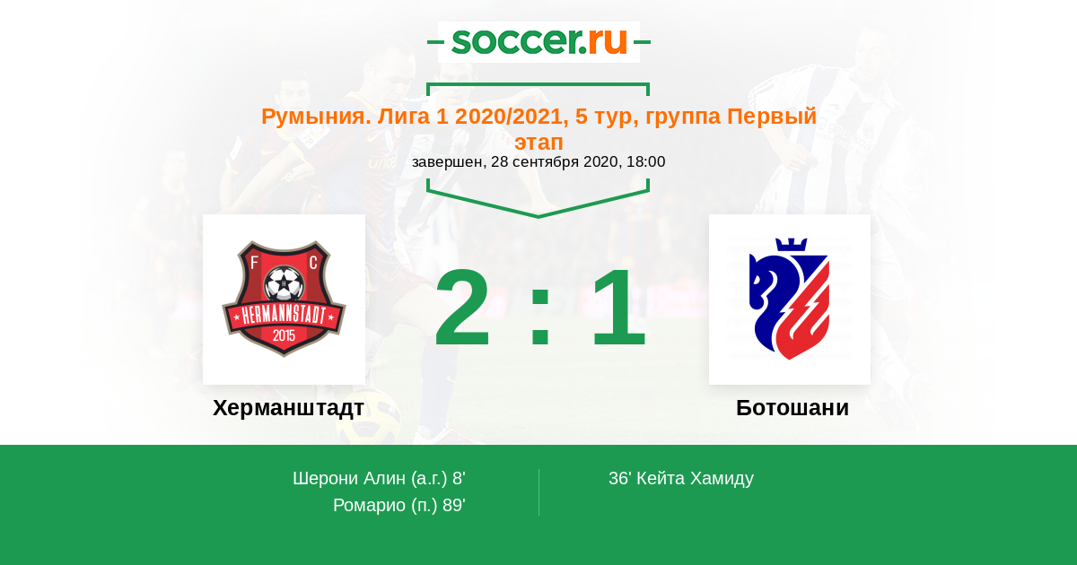Протокол матча Херманштадт против Ботошани