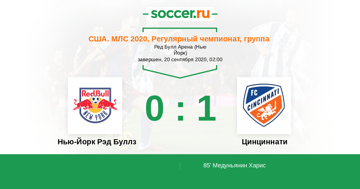 Протокол матча Нью-Йорк Рэд Буллз против Цинциннати