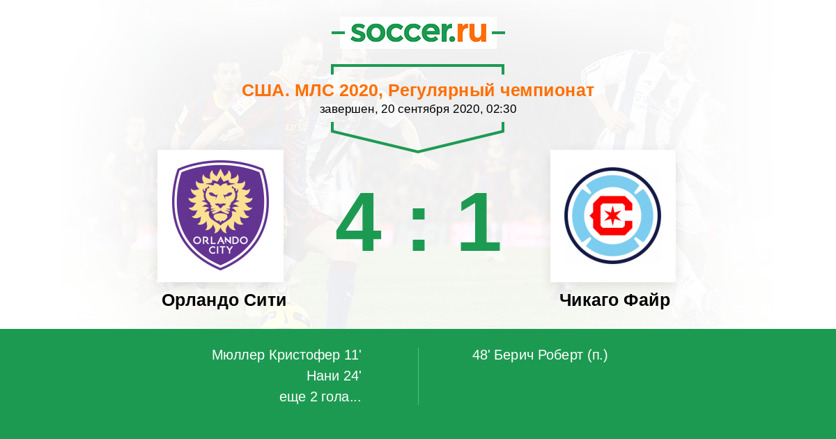 Протокол матча Орландо Сити против Чикаго Файр